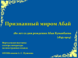 Приглашаем познакомиться с виртуальной выставкой «Признанный миром Абай». 180 лет со дня рождения Кунанбаева Абая (1845-1904 гг.)
