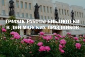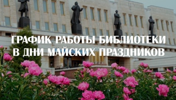 Уважаемые читатели! Главная библиотека региона поздравляет с Первомаем и Днём Победы! Обратите, пожалуйста, внимание на изменения в графике работы Пушкинки в мае.