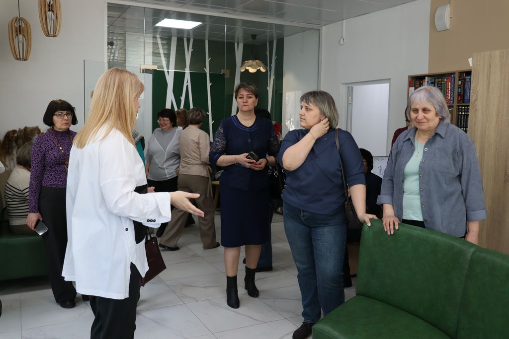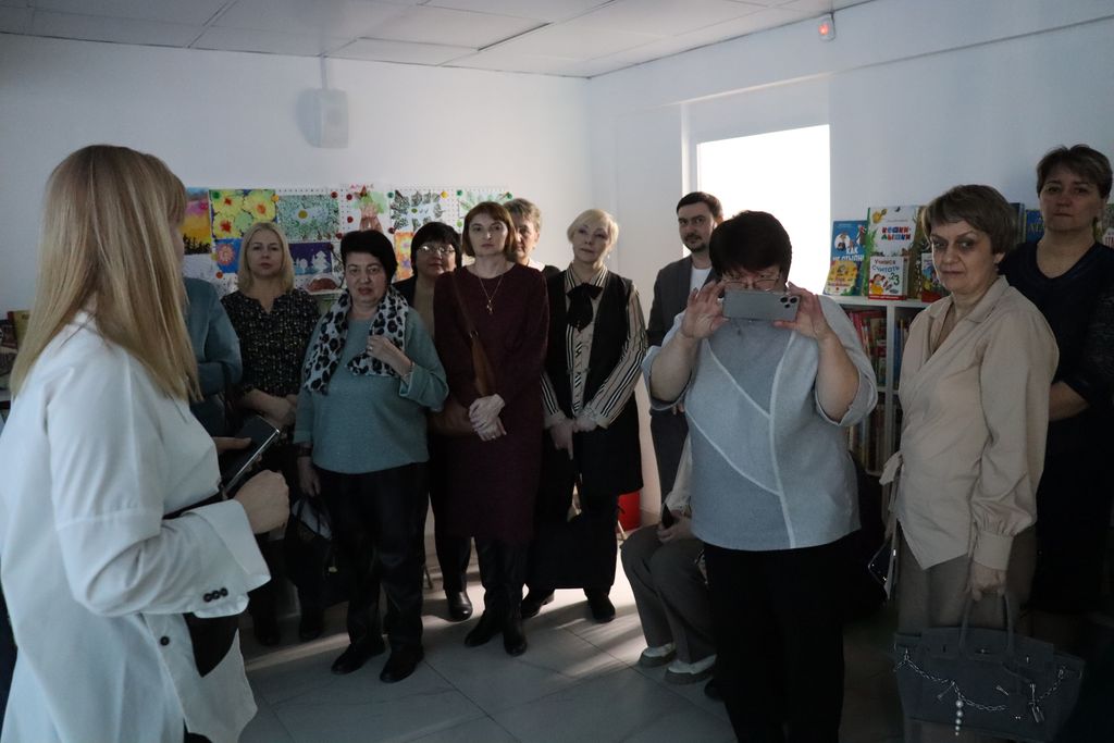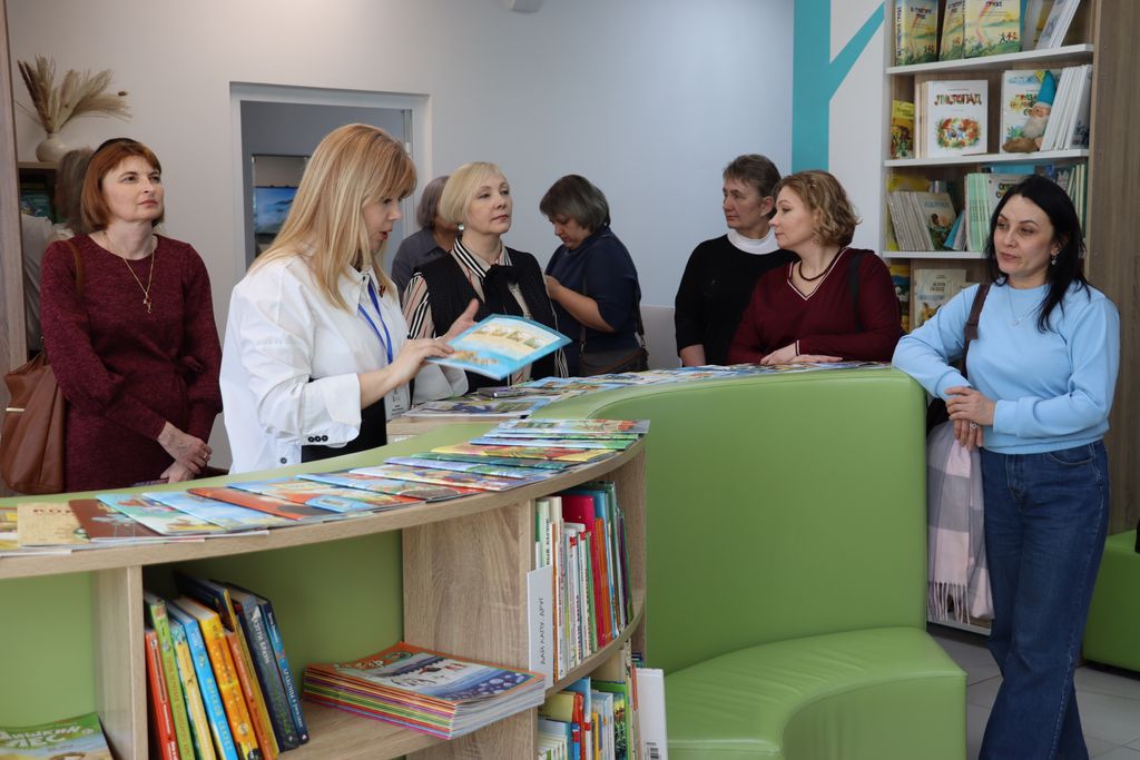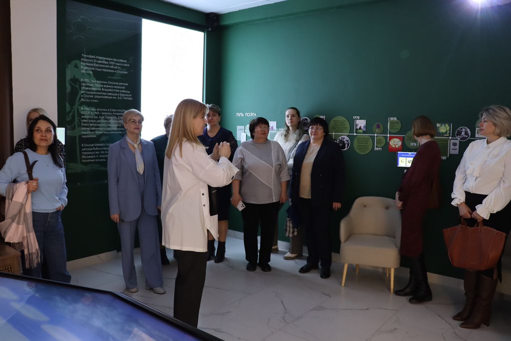 В ходе деловой экскурсии в Детскую библиотеку им. Т. Белозёрова Наталья Леонидовна Дрозд, директор бюджетного учреждения культуры города Омска «Омские муниципальные библиотеки», представила руководителям библиотечных систем области опыт работы по модернизации библиотеки в соответствии с концепцией экологического пространства на основе творчества поэта-земляка. Лапина Елена Петровна, заведующий Детской библиотекой им. Т. Белозёрова, рассказала о практике реализации творческих проектов «АРТмосферное чтение», «КИНОКНИГА», «Подрастайка», «Доброе сердце»; познакомила с форматом работы музейно-мемориального зала Тимофея Белозёрова, познавательного пространства «ЭКОлаборатория», креативных локаций для продвижения книги и чтения как компонента духовно-нравственного развития личности.