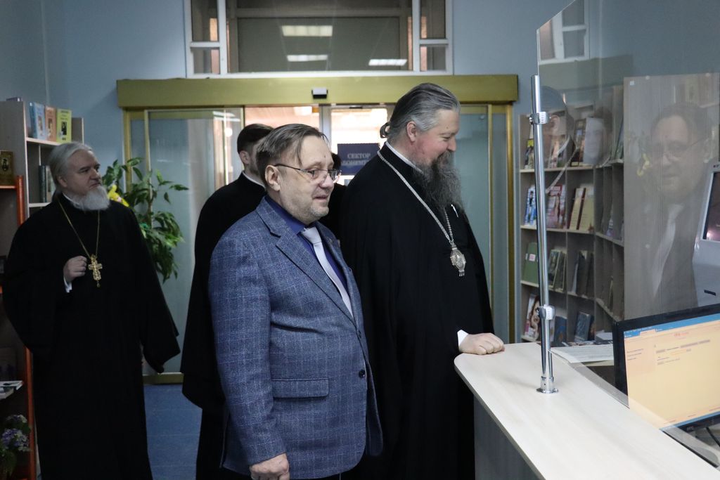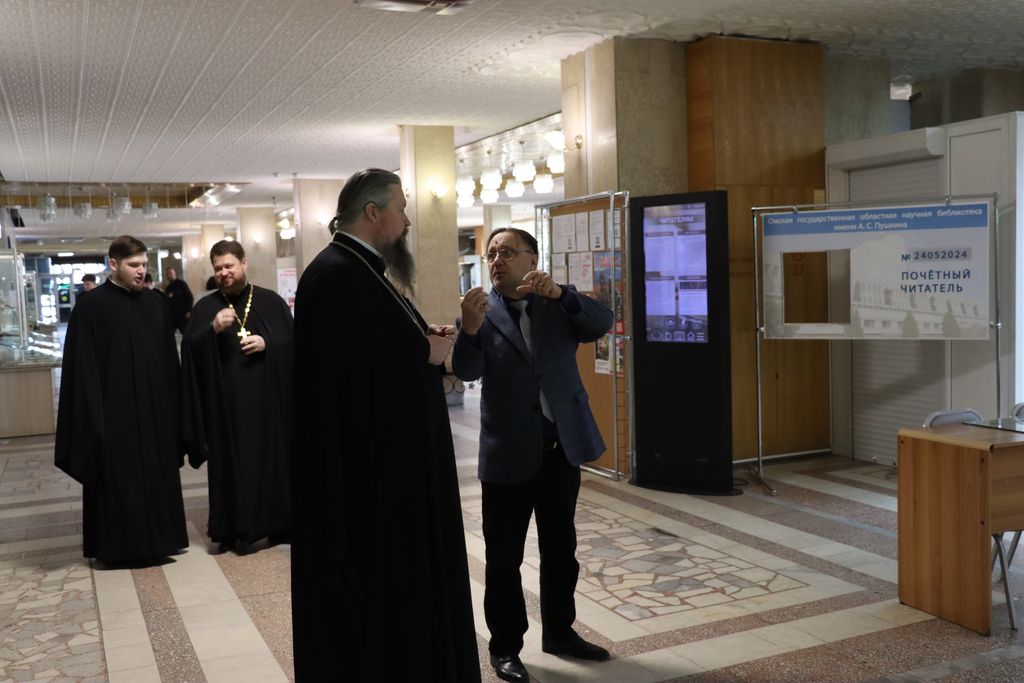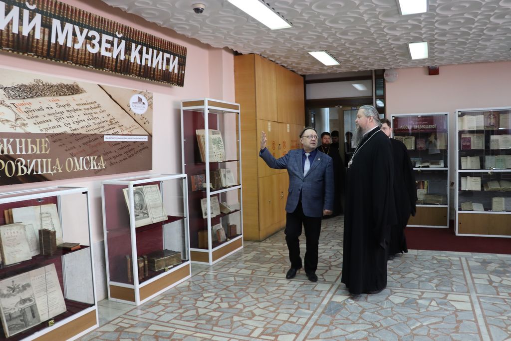 Перед началом мероприятия митрополит совершил экскурс по библиотеке, посетил читальные залы, познакомился с богатым книжным фондом. Особый интерес у почётного гостя вызвало посещение Омского музея книги Центра книжных памятников и музея миниатюрной книги. Директор А. В. Ремизов рассказал историю библиотеки, показал особо ценные экземпляры XVII века, хранящиеся в фонде редких и ценных книг.