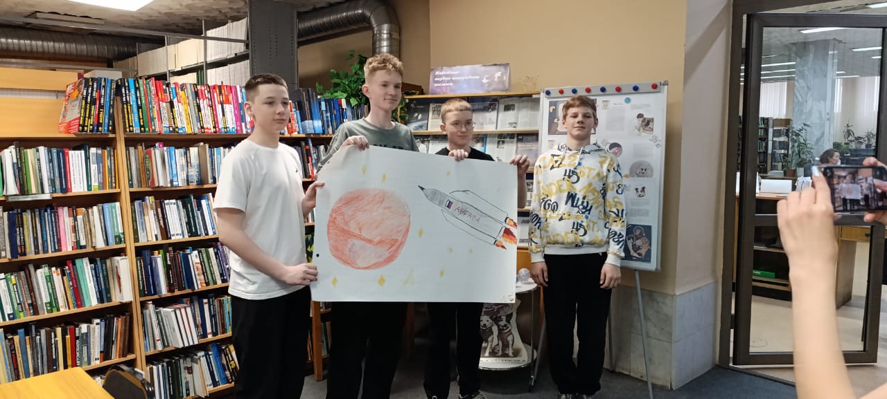 Ребята поучаствовали в квест-игре «В погоне за звездами» и своей игре «На звёздных и земных орбитах», проявили творческие способности в конкурсе рисунков «Загадочный космос», приуроченного к 60-летию выхода Алексея Архиповича Леонова в открытый космос, а также познакомились с книжно-иллюстративными выставками: