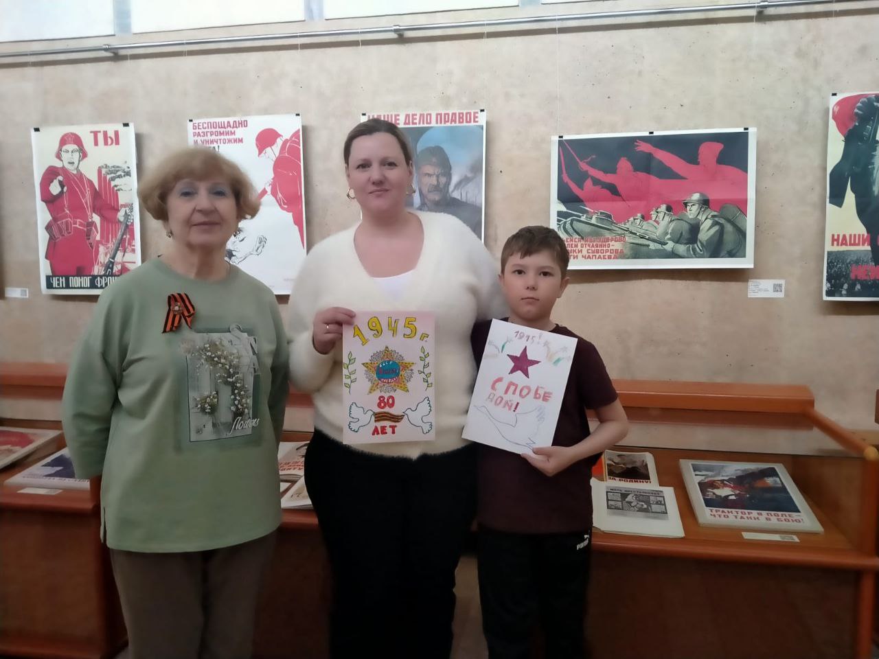 Встреча проходила в выставочном павильоне, где экспонируется художественная выставка «Голос времени: плакаты Великой Отечественной войны 1941–1945 гг.», приуроченная к 80-летию Победы». Каждый плакат, представленный на выставке, имеет свой QR-код, ведущий к истории создания плаката, биографии его автора, а ссылка на конкретное издание содержит репродукцию данного плаката.