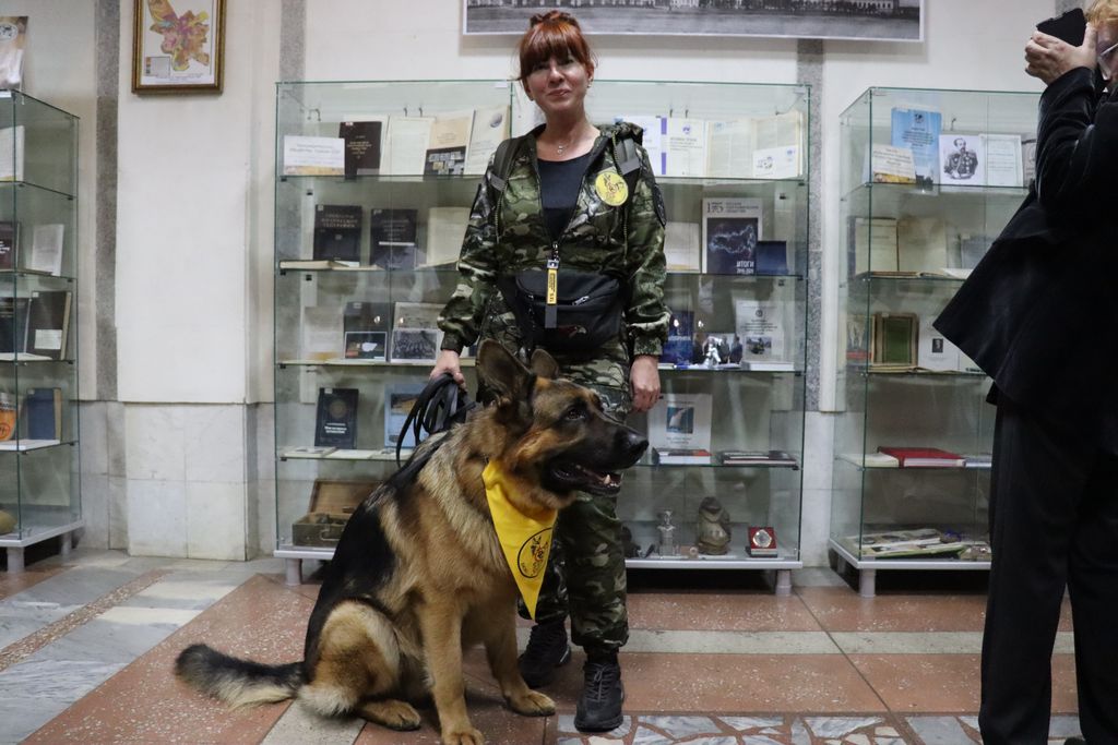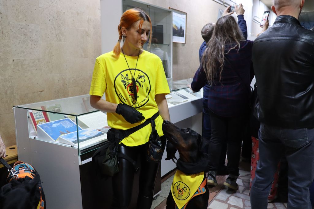 Непогода смогла лишь изменить расположение площадки кинологических служб, но интерес к четвероногим друзьям не спадал на протяжении 3,5 часов. Большое количество собак разных пород, демонстрация элементов дрессуры и трюков, привлекало абсолютно всех гостей мероприятия.Все желающие могли погладить собак и сделать фото на память с четвероногим питомцем.