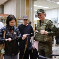 На патриотической интерактивной площадке можно было узнать о деятельности военных структур направленных на защиту интересов нашей Родины, на сохранение исторической памяти и героического наследия предков. Гости собирали различные виды оружия, примеряли защитную амуницию и пробовали управлять беспилотными устройствами. Представители волонтёрской организации «ТЫЛ=ФРОНТ» провели мастер-классы по плетению тактических браслетов, изготовлению талисманов, расписи фирменных футболок и шопперов.