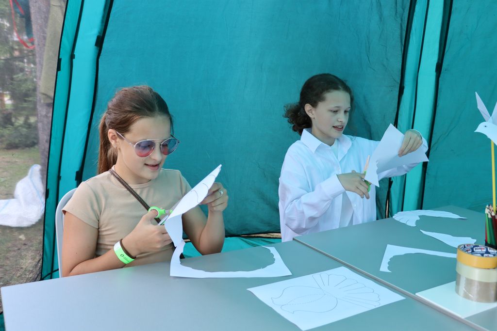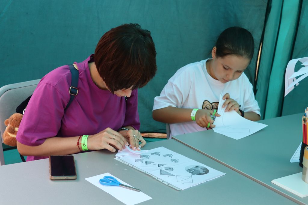 Юные посетители с удовольствие проявляли свою фантазию, мастерив объёмную поделку из бумаги — символ мира, который олицетворяет гармонию, доброту и взаимопонимание между людьми. А ребята постарше могли познакомиться с переплётным делом и своими руками легко и быстро изготовить блокнот.