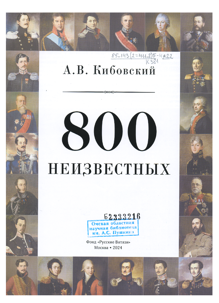 Кибовский, Александр Владимирович. 800 неизвестных / А. В. Кибовский. – Москва: Фонд «Русские Витязи», 2024. – 627 с.: ил., портр.
