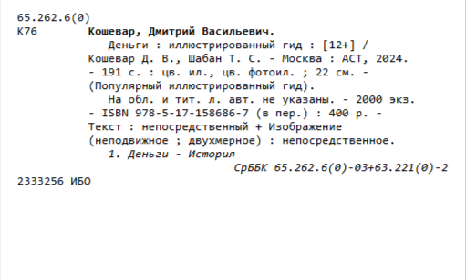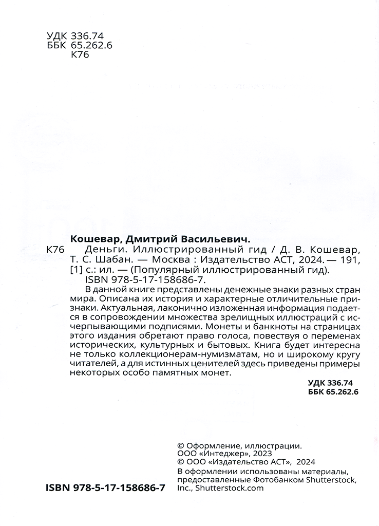 Кошевар, Дмитрий Васильевич. Деньги: иллюстрированный гид / Д. В. Кошевар, Т. С. Шабан. – Москва: АСТ, 2024. – 191 с.: цв. ил. – (Популярный иллюстрированный гид).