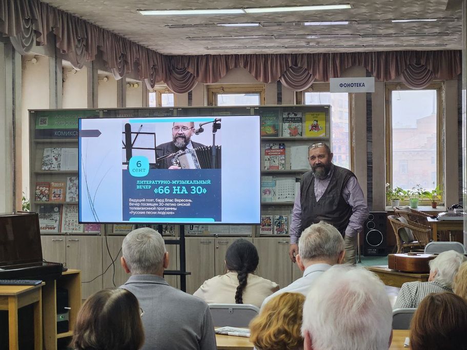 6 сентября в зале искусств Омской Пушкинки состоялась тёплая, камерная встреча «66 на 30» из цикла «В гостях у казака Власа», посвящённая 30-летию омской телепрограммы «Русские песни людские». Мероприятие, организованное отделом искусств и культурно-просветительских проектов, собрало поклонников передачи, краеведов и всех, кто ценит русскую песенную традицию.