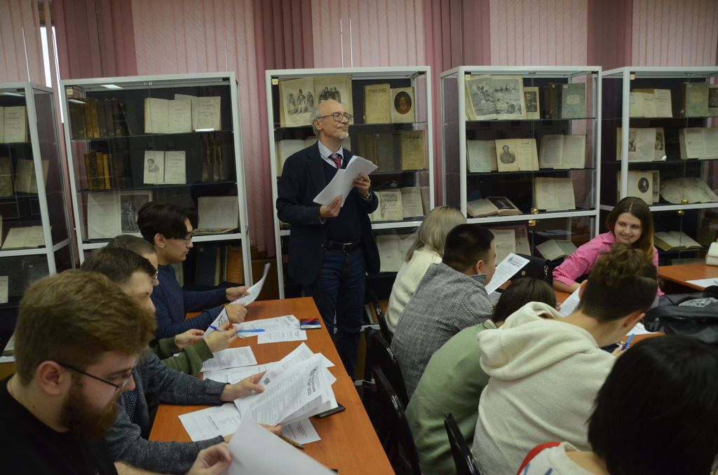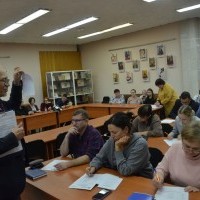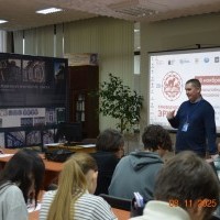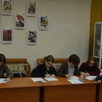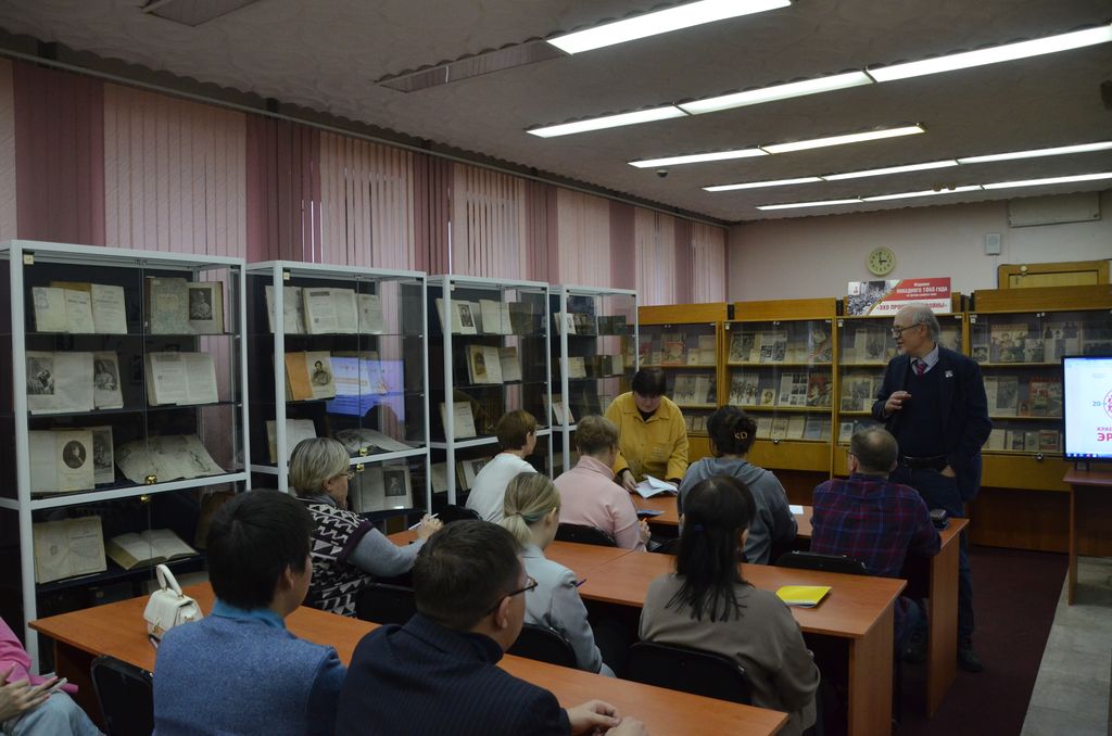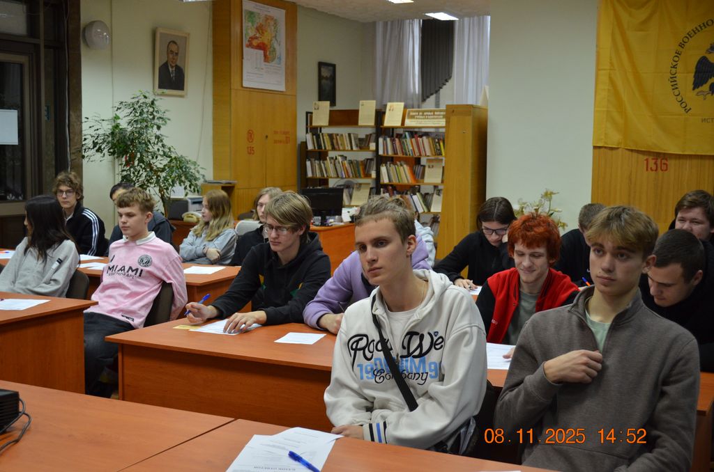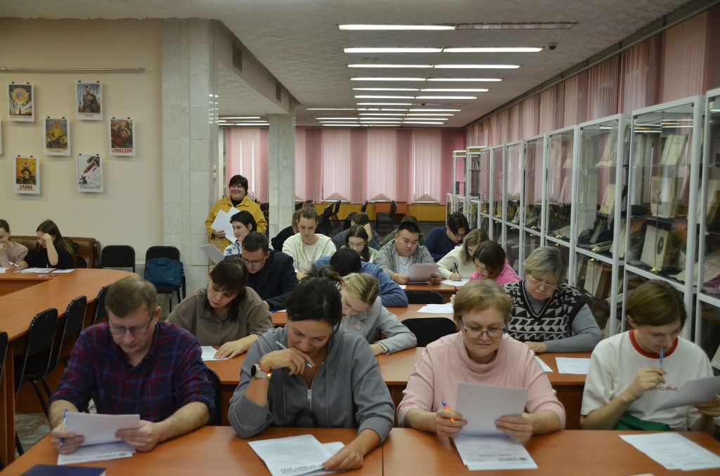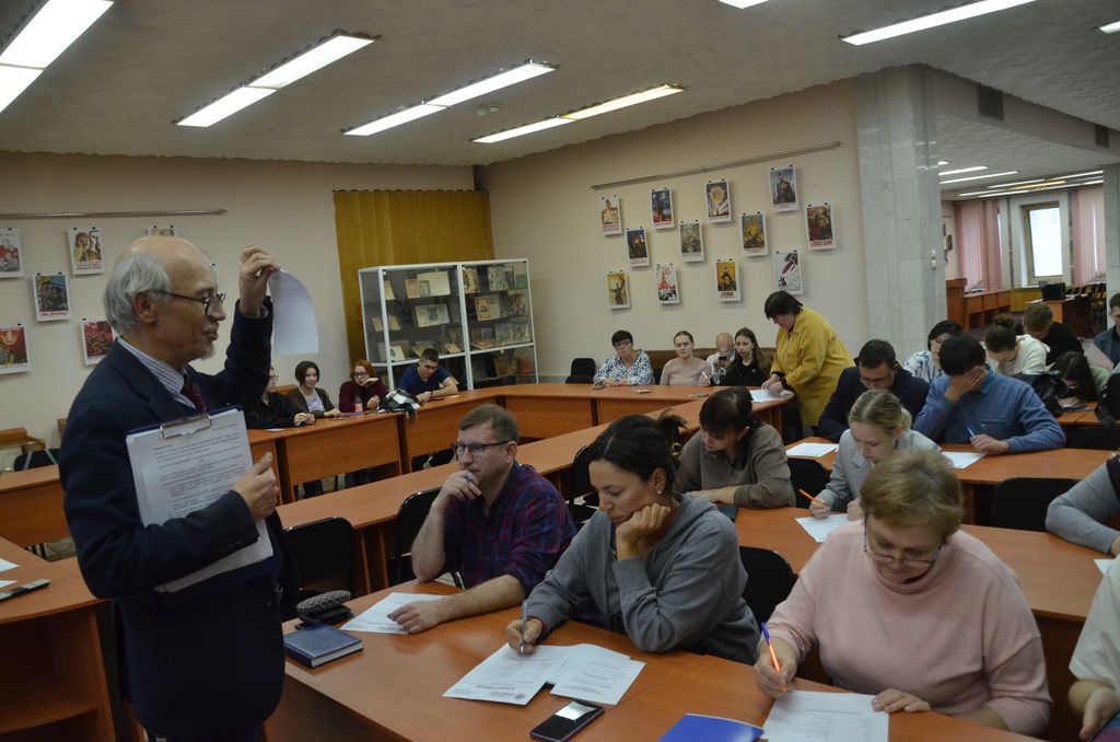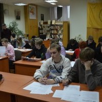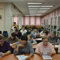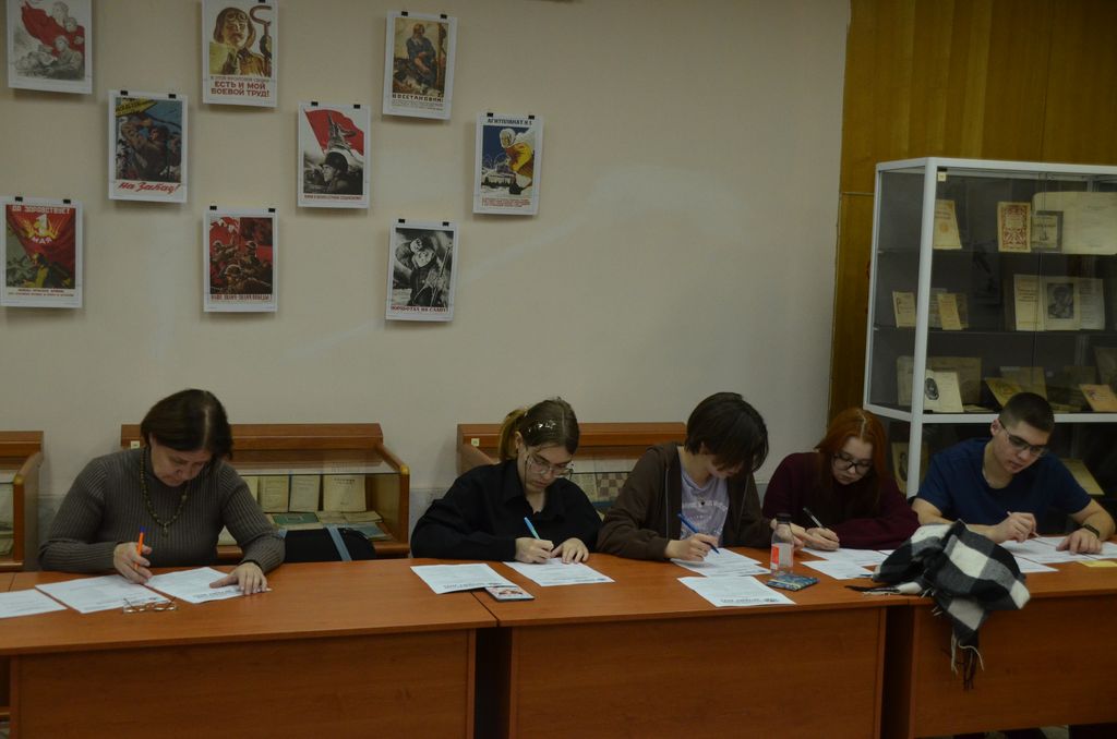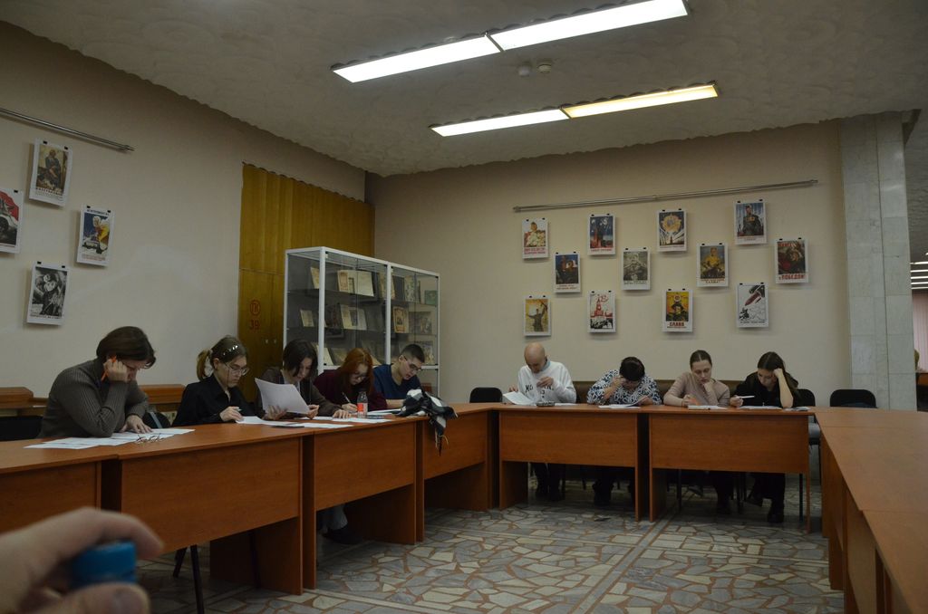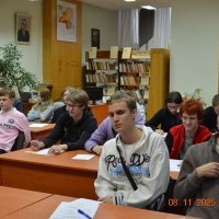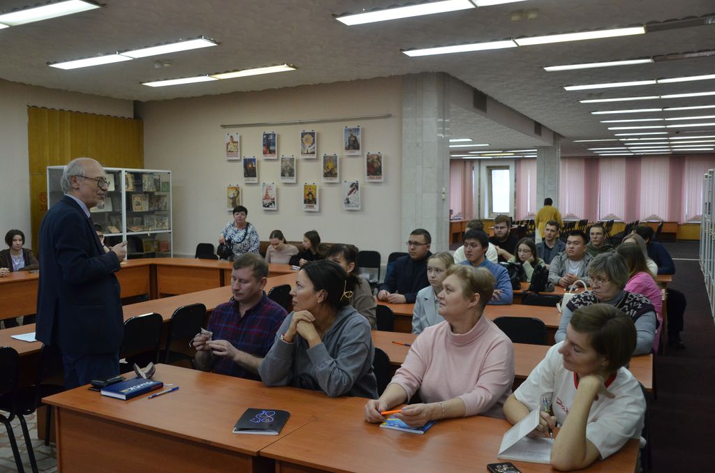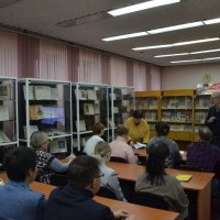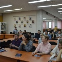 В нашей библиотеке было подготовлено 2 аудитории, в которых разместилось 60 человек: учащиеся Омского авиационного колледжа имени Н. Е. Жуковского, Омского государственного педагогического университета, а также гости библиотеки, наши постоянные читатели и краеведы.