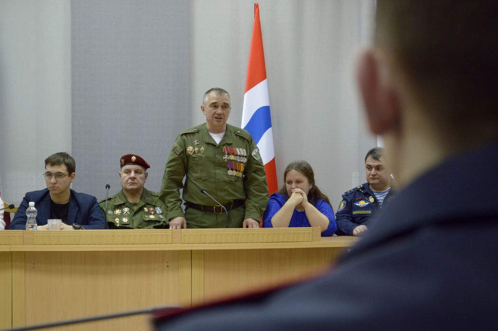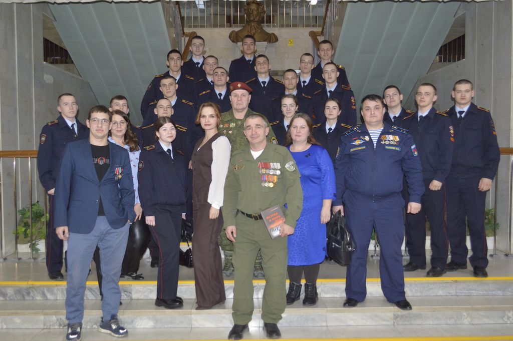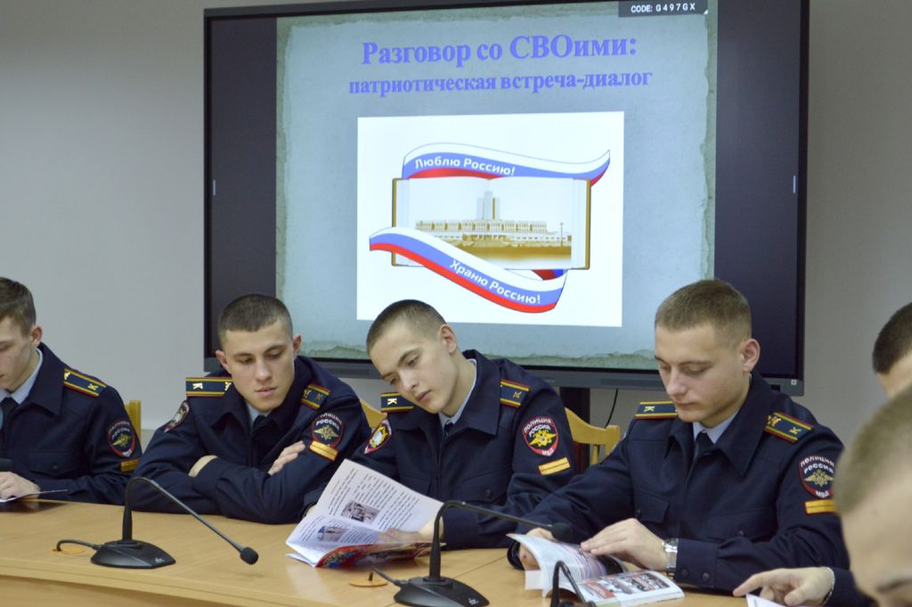 В рамках IV Литературно-патриотического фестиваля «Люблю Россию! Храню Россию!» информационно-библиографический отдел 21 февраля организовал для 242-й учебной группы факультета подготовки сотрудников полиции Омской академии МВД России встречу-диалог «Разговор со СВОими» с представителями Ассоциации ветеранов СВО Омской области. Курсанты в честном и открытом разговоре получили от ветеранов боевых действий, среди которых были участники локальных конфликтов и ветераны МВД, прямые ответы на интересовавшие их вопросы: что побудило вступить на военный путь, какая гуманитарная помощь наиболее важна бойцам, что в зоне СВО самое страшное для психического восприятия и многие другие. Отдельный блок вопросов был посвящён тактической медицине. Не обошли стороной и тему поэтического творчества: на мероприятии прозвучали стихи как участников СВО, так и курсантов.