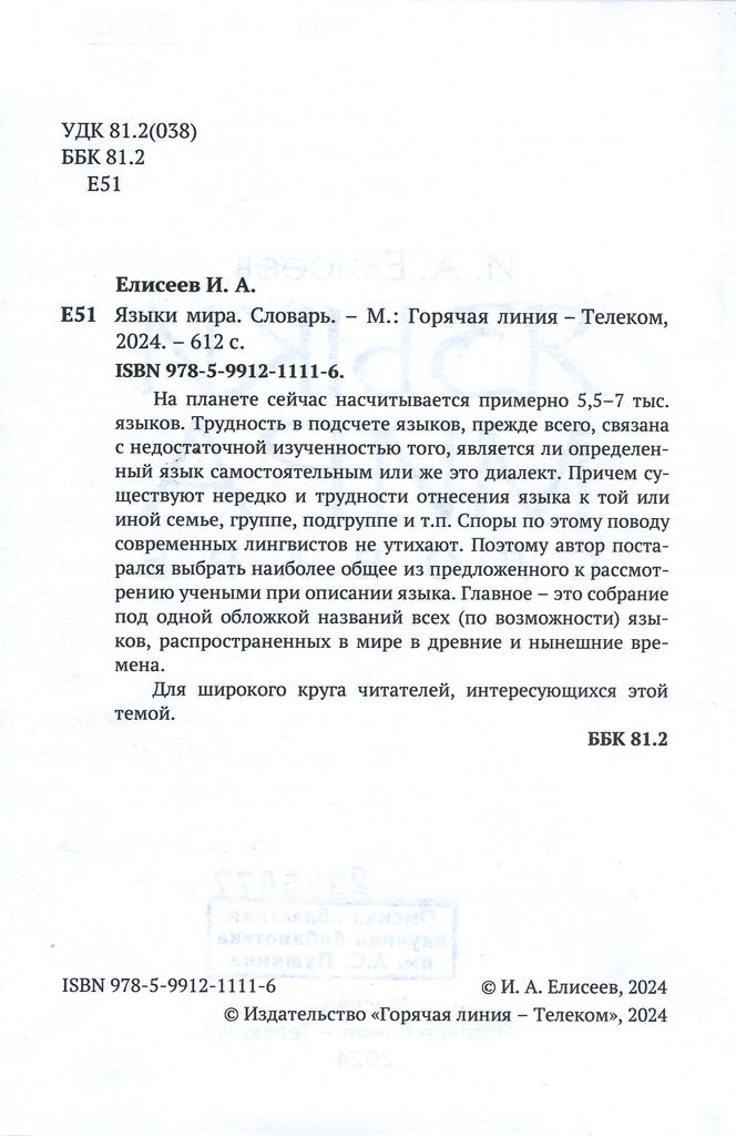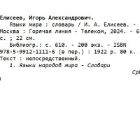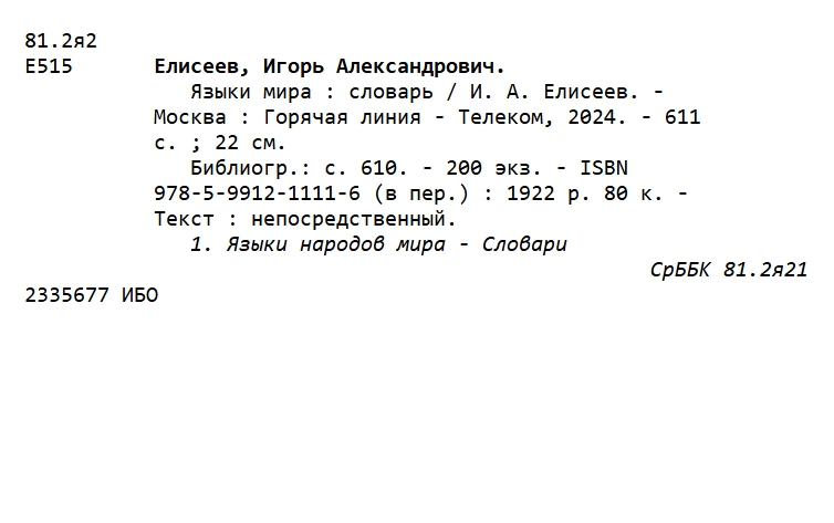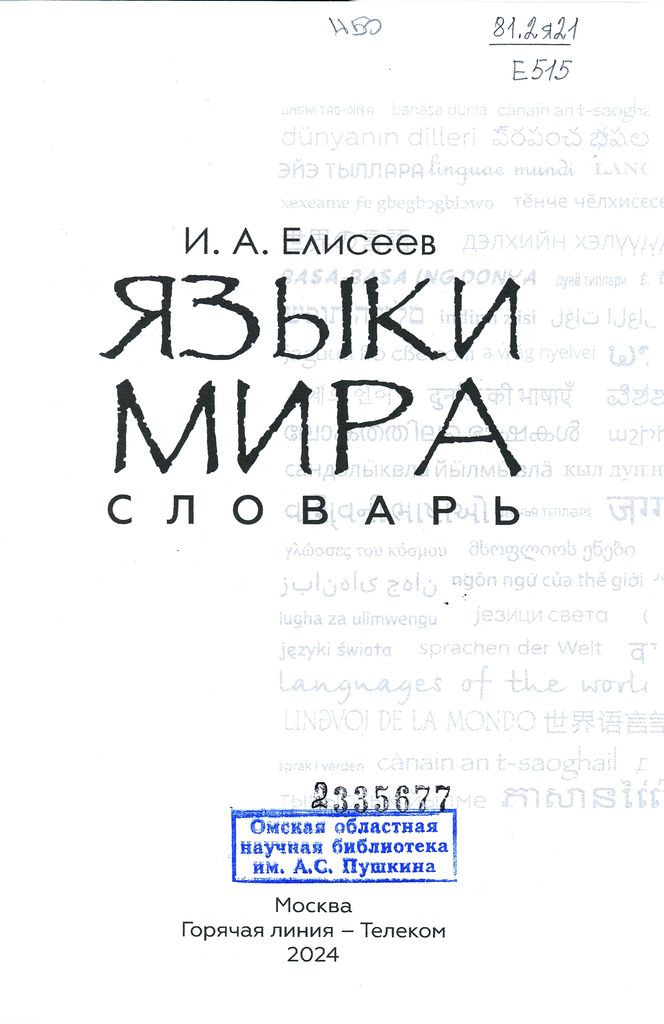 Елисеев, Игорь Александрович. Языки мира: словарь / И. А. Елисеев. — Москва: Горячая линия — Телеком, 2024. — 611 с.