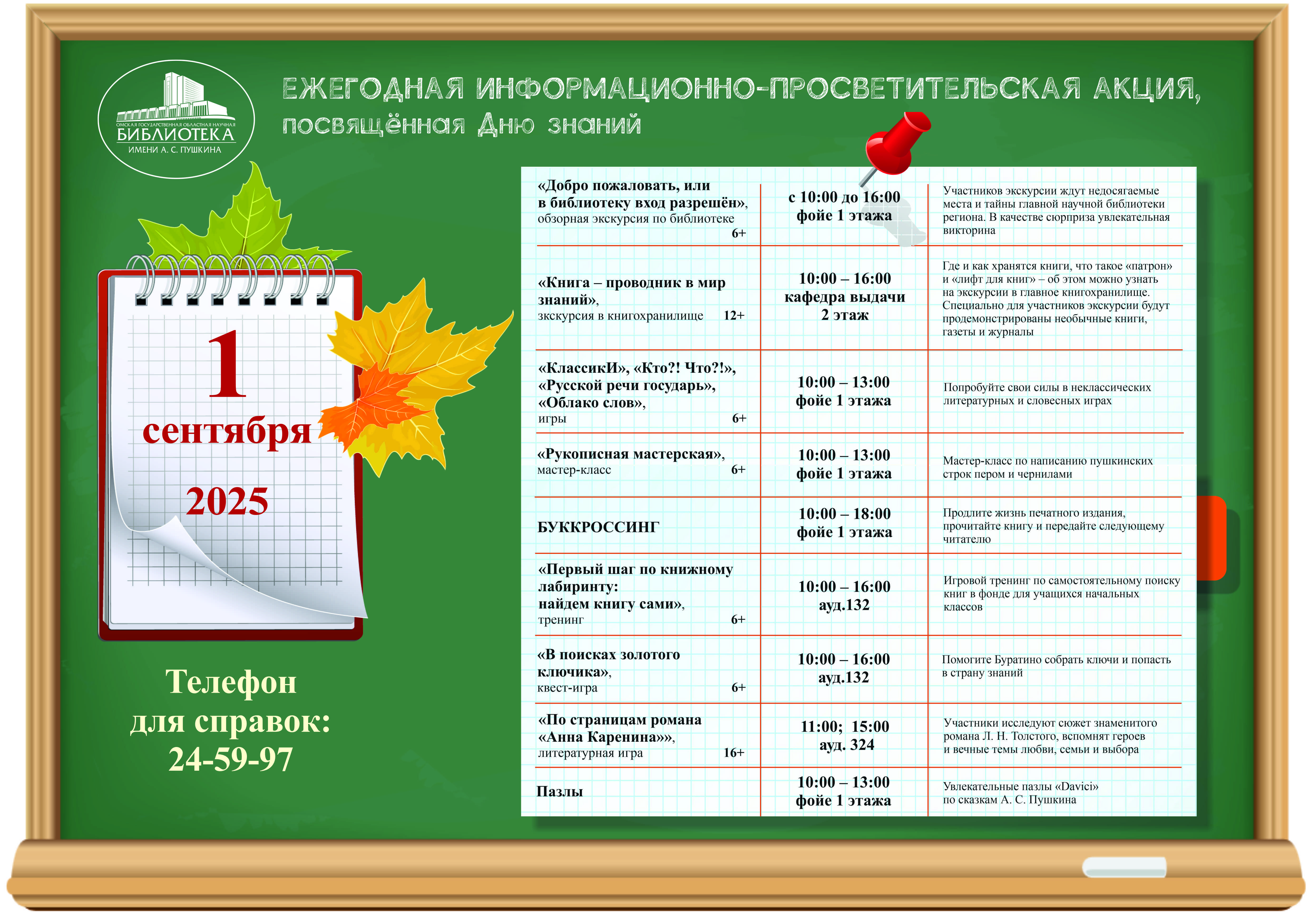 1 сентября Омская государственная областная научная библиотека имени А. С. Пушкина приглашает присоединиться к информационно-просветительской акции, посвящённой Дню знаний.