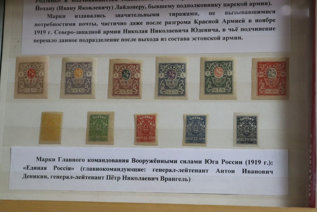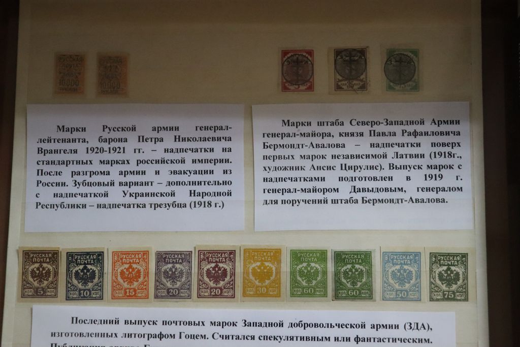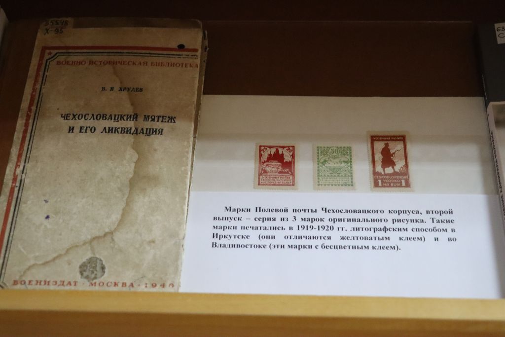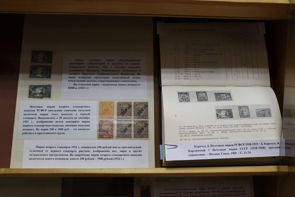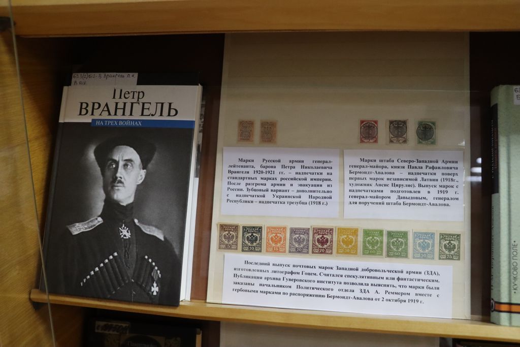 В Центре краеведческой информации (ауд. 229) ОГОНБ имени А. С. Пушкина работает книжно-предметная выставка «Почтовая марка в годы Гражданской войны 1918-1923 годов: к 100-летию Омского отделения Всероссийского общества филателистов и 105-летию гибели А. В. Колчака».