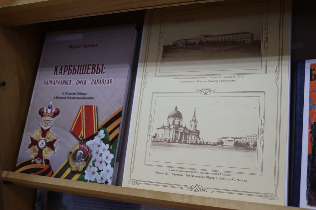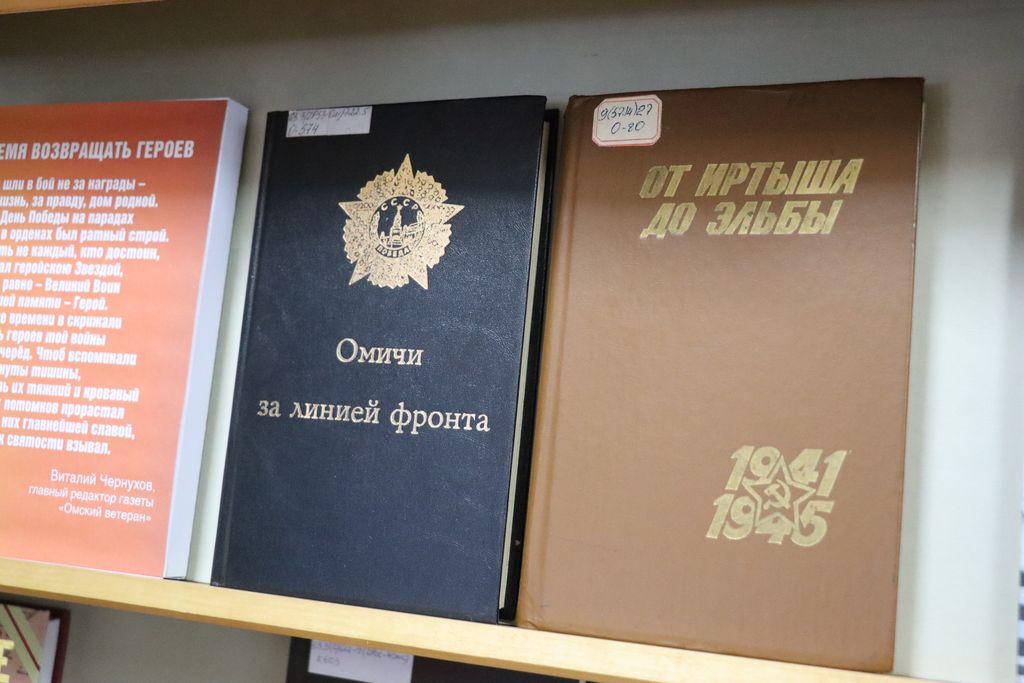 Всего на выставке представлено около 70 изданий. Среди них особое значение имеют следующие книги и публикации: «Наши земляки – Герои Советского Союза» (Омск, 1949); «Омичи в боях за Родину» (Омск, 1963); «От Иртыша до Эльбы» (Омск, 1984); «Их именами названы улицы Омска» (Омск, 1988); «Книга Памяти: в 8 тт.» (Омск,1995); «Солдаты Победы: в 11 тт.» (Омск. – 2000-2003); «Золотые звёзды омичей: в 5 тт.» (Омск, 2021); Шлевко Г. М. Ради жизни на земле: эта кн. о ГерояхСоветского Союза, тех, кто родился, жил и живет вг. Омске и Ом. обл. - [Омск, 1972, на титульном листе автографы Героев Советского Союза, в том числе А.М. Ситникова, В.А. Голоскокова, А.М. Никандрова]; Шапран М. Дмитрий Михайлович Карбышев (Омск, 1975); Колесников А. Д. Сибиряки в битве за Днепр : учеб. пособие / А. Д. Колесников. - Омск : Изд-во СибАДИ, 2004; Колесников А. Д. «Честь и слава : Сибиряки в решающих битвах Великой Отечеств. войны 1941-1945 гг. : 60-летию Победы совет. народа в Великой Отечеств. войне посвящ.» (Омск, 2005); Колесников А. Д. «Тверже гранита : сибиряки в боях за Сталинград» (Омск, 2008); Колесников А.Д. «Остров в море огня» (Омск, 2024); Фронт и тыл: Омская область в Великой Отечественной войне 1941-1945 годов» (Омск, 2020); «Дмитрий Михайлович Карбышев (1880-1945): генерал, учёный, патриот» (Омск, 2023) и др.