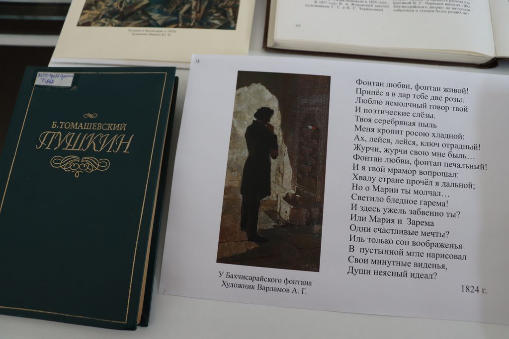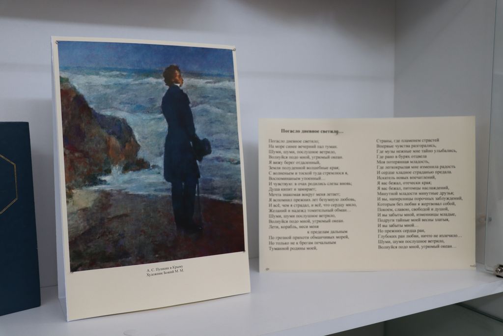 Крымские впечатления Пушкина нашли своё отражение в романтической поэме «Бахчисарайский фонтан», в поэтических картинках романа «Евгений Онегин» и в двух десятках стихотворений, среди которых элегия «Погасло дневное светило», «К морю», «Таврида», «Ненастный день потух».