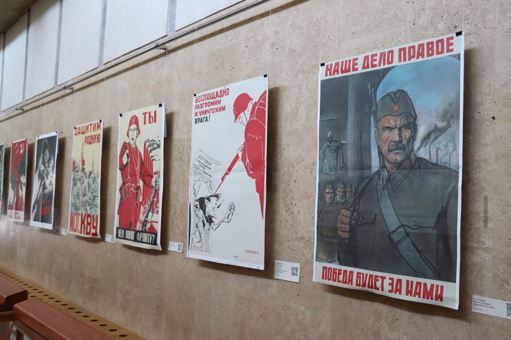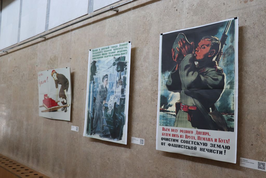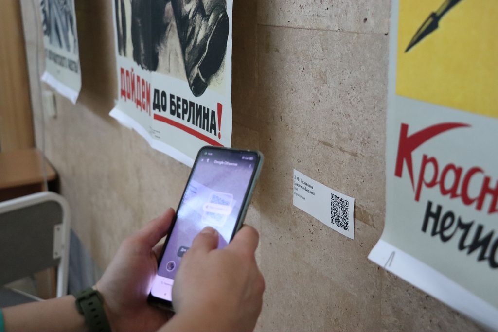 Каждый плакат, представленный на выставке, имеет свой QR-код, ведущий к дополнительным материалам: истории создания плаката, биографии его автора, а также указание на конкретное издание в библиотеке, содержащее репродукцию данного плаката.