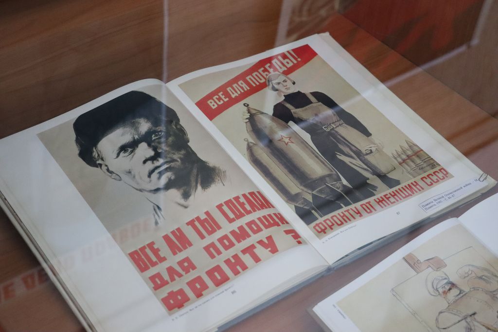 Созданием агитационных плакатов занимались талантливые художники, имена которых остались в истории изобразительного искусства советского народа. На выставке представлены репродукции плакатов признанных мастеров советской графики: Виктора Корецкого, Ираклия Тоидзе, Дмитрия Моора, Владимира Серова, Леонида Голованова, творческого коллектива «Кукрыниксы» и другими художниками, которые внесли значительный вклад в визуальную хронику Великой Отечественной войны.