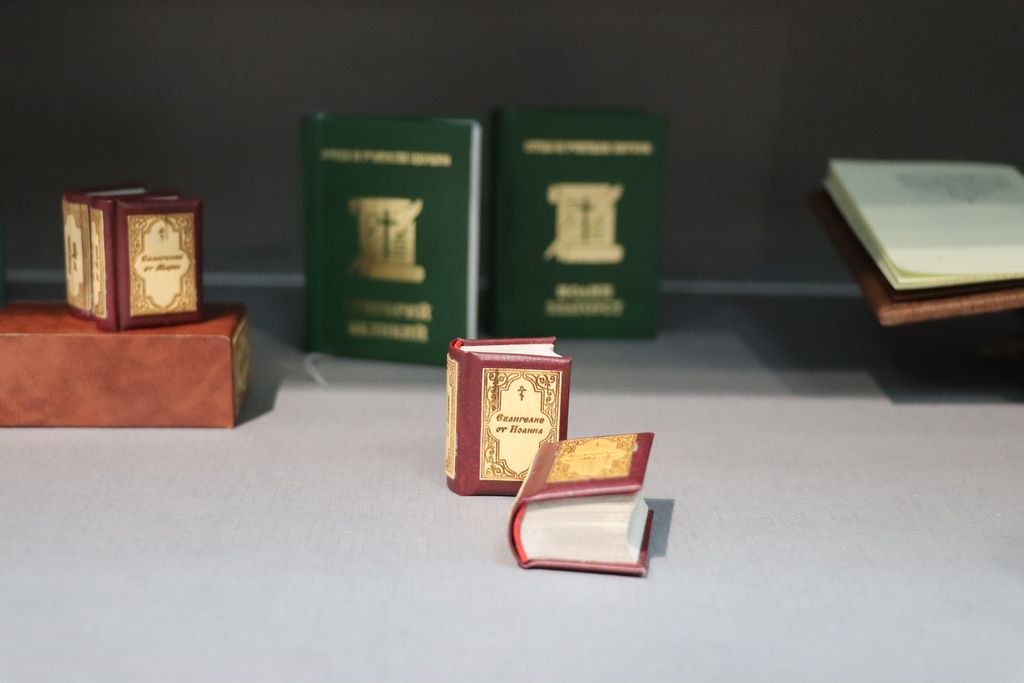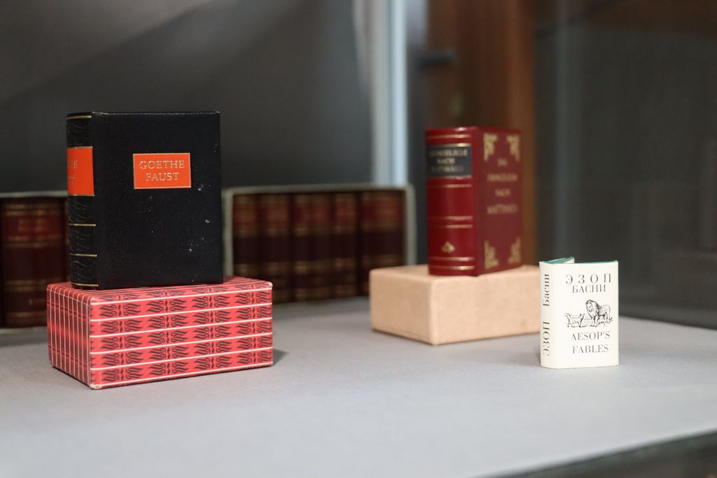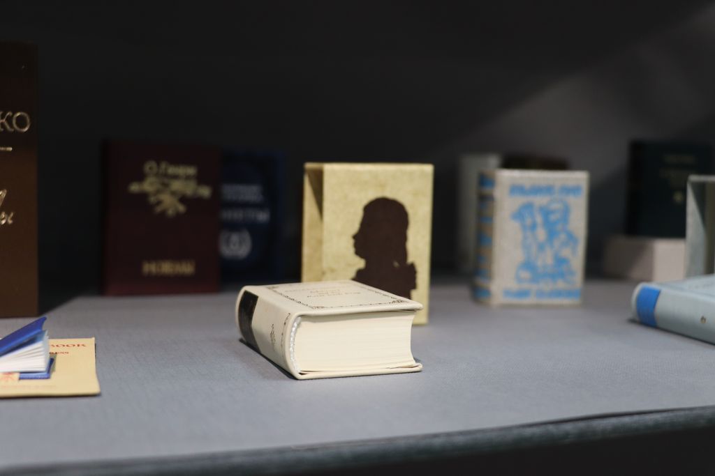 Экспозиция представляет вниманию посетителей коллекцию миниатюрных изданий из личного собрания известного мастера-миниатюриста — Анатолия Ивановича Коненко. На выставке демонстрируются миниатюрные издания отечественных и зарубежных авторов, религиозные книги и альбомы с произведениями искусства известных живописцев.