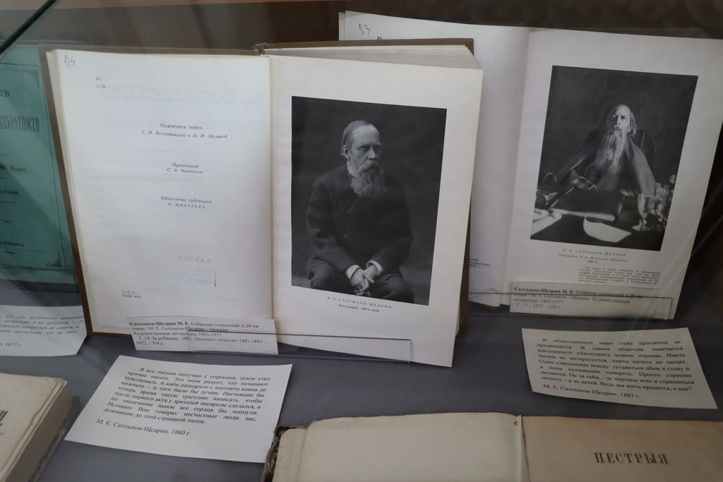 Особый интерес представляют первые публикации Салтыкова-Щедрина в «Отечественный записках» за 1847 год и в «Русском вестнике» за 1857 год. Также гостям библиотеки предоставляется уникальная возможность ознакомиться с поэтическим наследием писателя и факсимильными изданиями рукописей писателя.