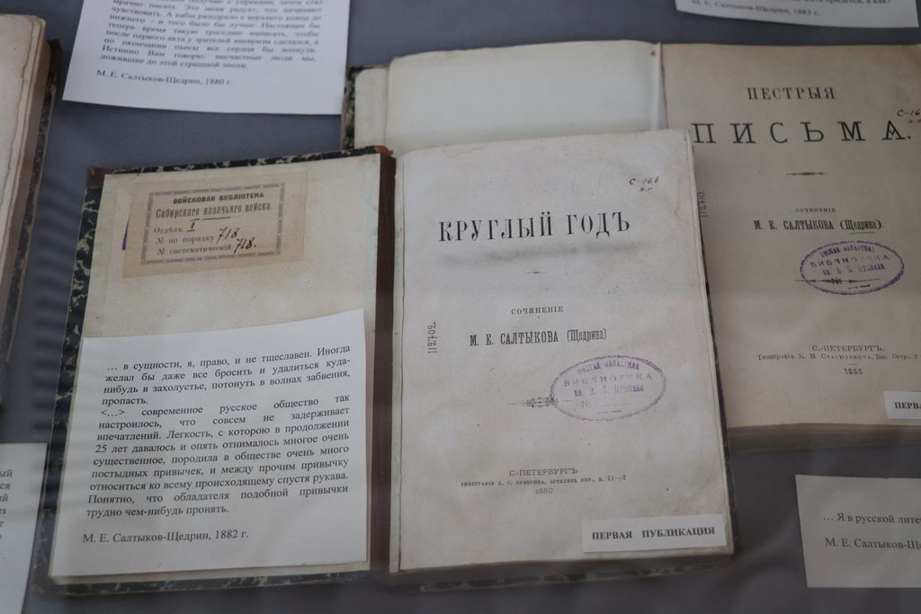 Книжно-иллюстративная выставка «Творчество М. Е. Салтыкова-Щедрина в книжной памяти Омска» 12+