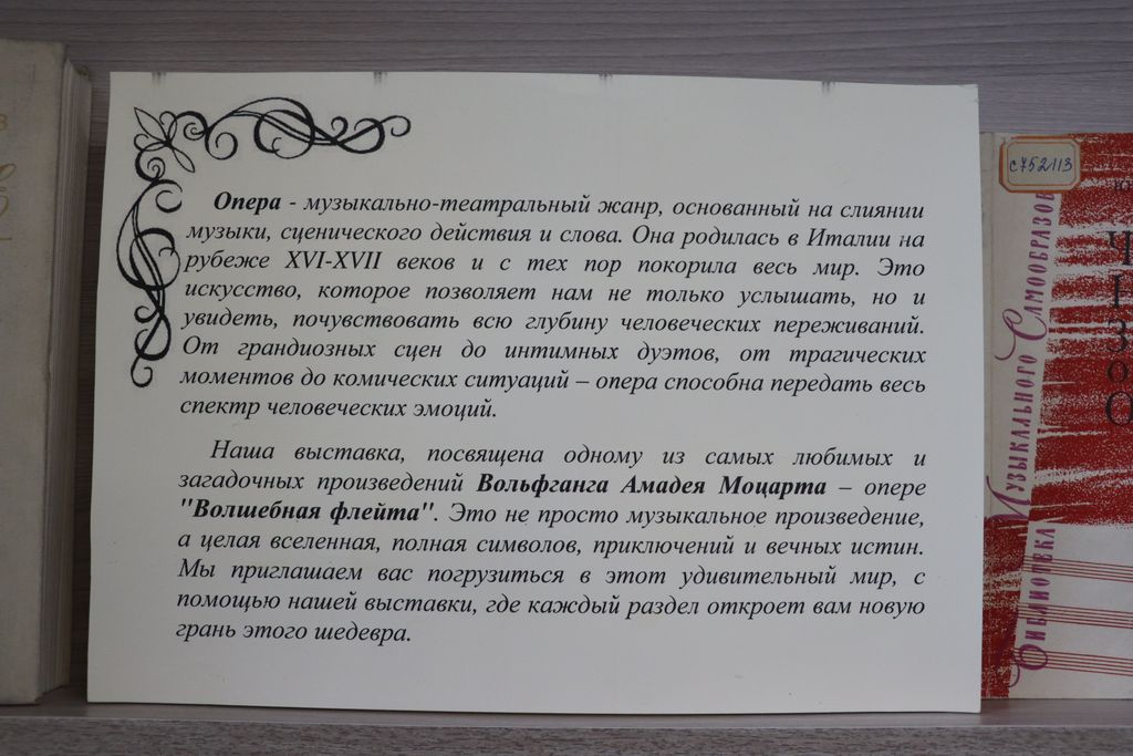 Книжно-нотная выставка «В. А. Моцарт и его «Волшебная флейта» из цикла «О чём опера для народа?» 12+