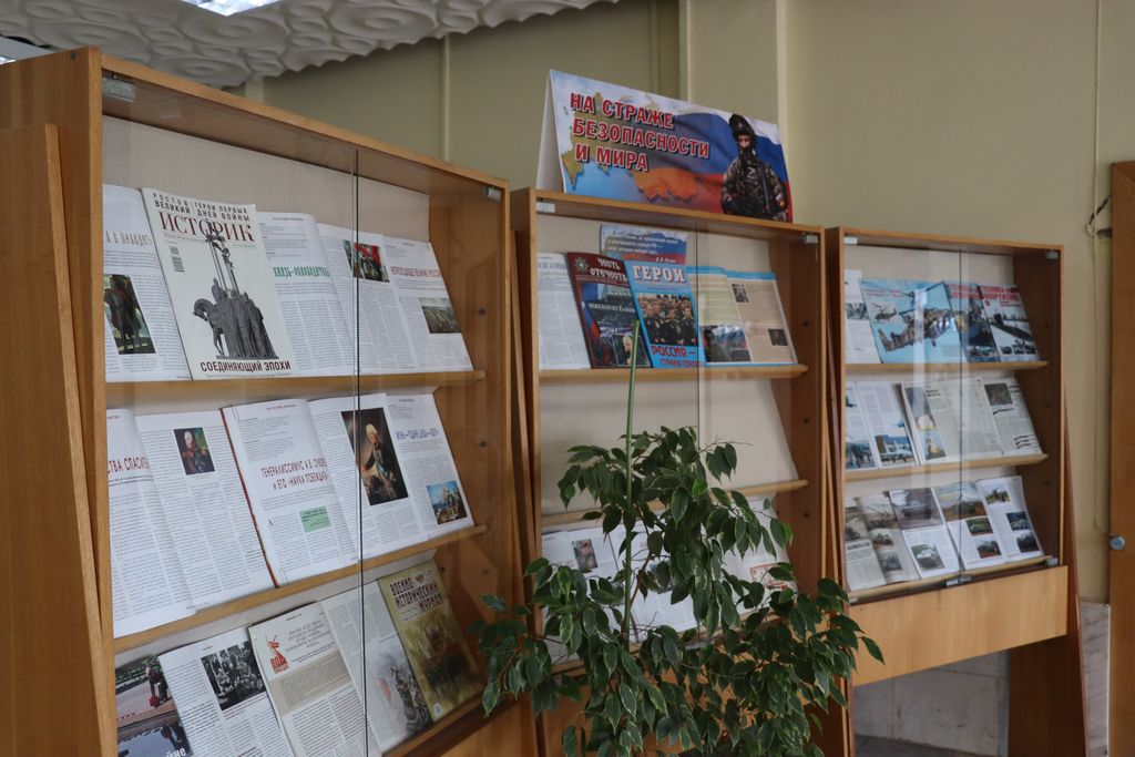 В преддверии праздника «День защитника Отечества» с 09.02.2026 г. в зале текущих периодических изданий начала работать выставка «На страже безопасности и мира».