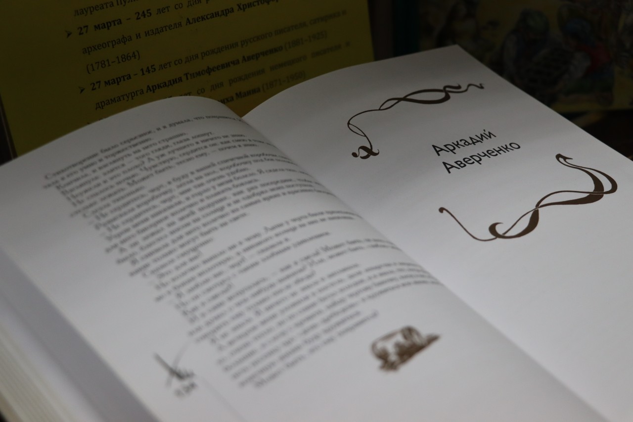 27 марта 1881 года родился русский писатель-юморист, драматург, театральный критик, редактор известного сатирического журнала «Сатирикон» Аркадий Тимофеевич Аверченко (1881–1925). Его имя знала вся дореволюционная Россия. Популярность писателя была столь велика, что его называли «Королем смеха», «Русским Марком Твеном» и сравнивали с мастером коротких рассказов О. Генри. Только за одно десятилетие с 1908 по 1917 годы вышли в свет более 40 сборников сатирика, причем некоторые их них выдержали до 20 изданий. На выставке представлен сборник рассказов писателя-юмориста, написанных для детей и о детях в разные годы, «Молодняк: Рассказы» (Москва: «Детская литература», 1992), а также сборник произведений для взрослых «Почти смешные истории» («Ридерз Дайджест», 2008).